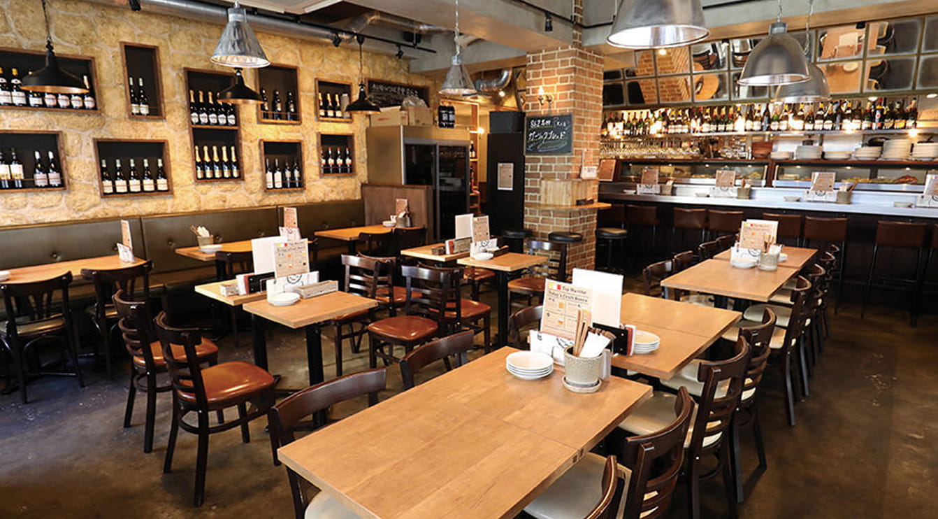 地元で人気のワインバル「八十郎商店」の姉妹店。木目を基調にしたナチュラルな雰囲気の店内には、テーブル席のほか、カウンター、個室なども。豊富なワインと創作料理をゆっくりといただけます。