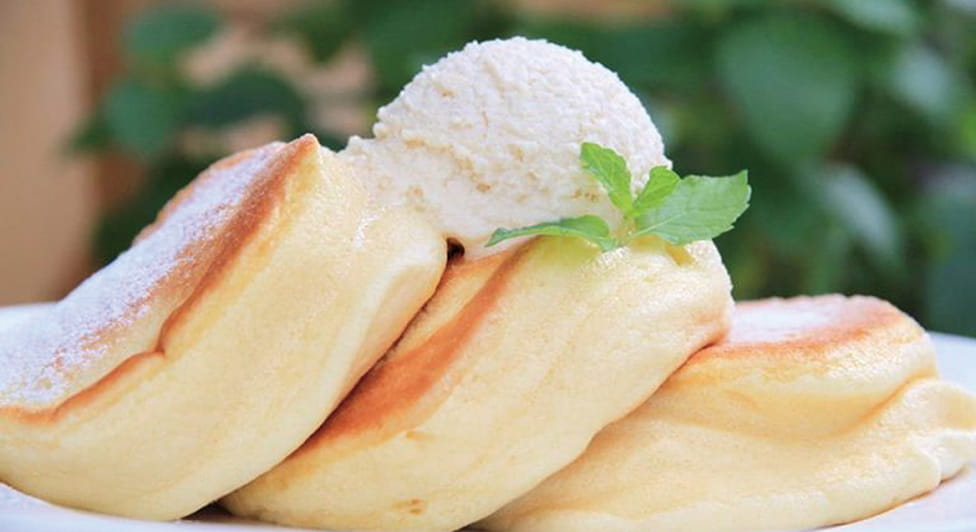 ふわふわでしっとり感のあるパンケーキは、オーダーを受けてから生地をこね、20分かけて焼き上げるこだわりの一枚。濃厚でクリーミーなニュージーランド産のマヌカハニーを使用したホイップバターとの相性抜群です。