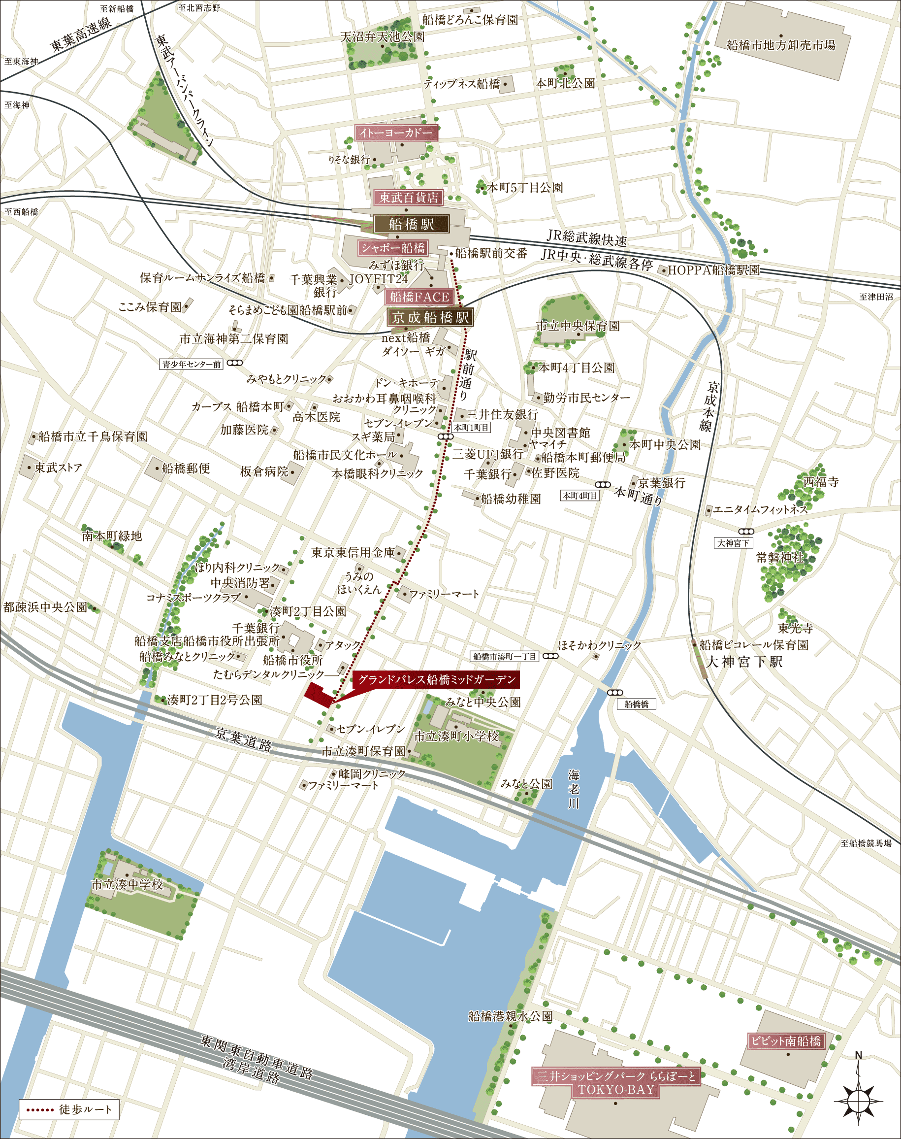 船橋駅の利便とマリーナエリアの潤いがクロスするミッドポジション。