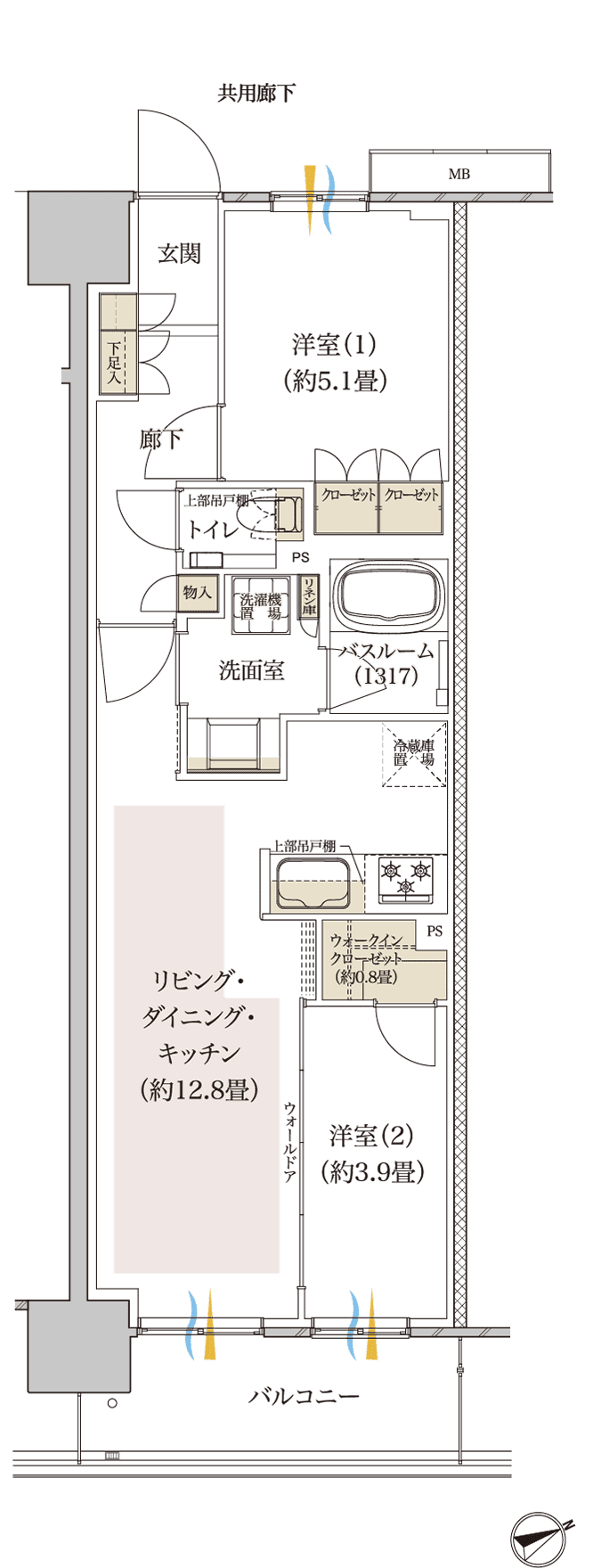 ※リビング・ダイニング・キッチンの畳数表記は、リビング・ダイニング・キッチンの扉より内側の面積からキッチンの面積を含んだもので算出しております。